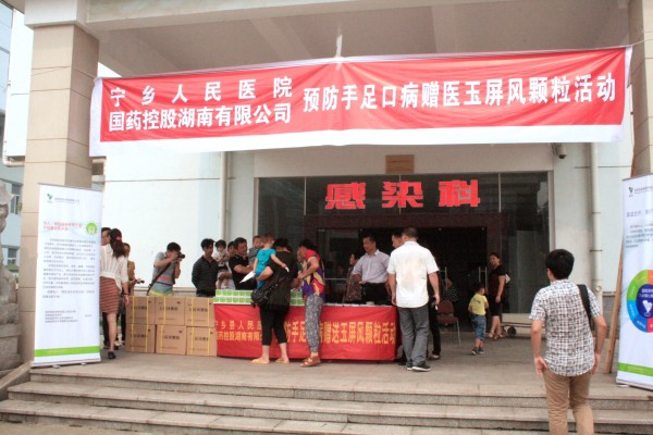 现在正值潮湿多雨的梅雨季节,引起手足口病的肠道病毒在这样的环境下更加活跃,传播能力更强,针对目前我省手足口病疫情快速上升的严峻形势,湖南省卫生厅、湖南省中医药管理局与国药控股湖南有限公司联合在全省14个地州市发放免费手足口病防治药物玉屏风颗粒6200盒。6月12日,长沙地区免费发放仪式在宁乡县人民医院举行,此次共发放玉屏风颗粒1000盒。